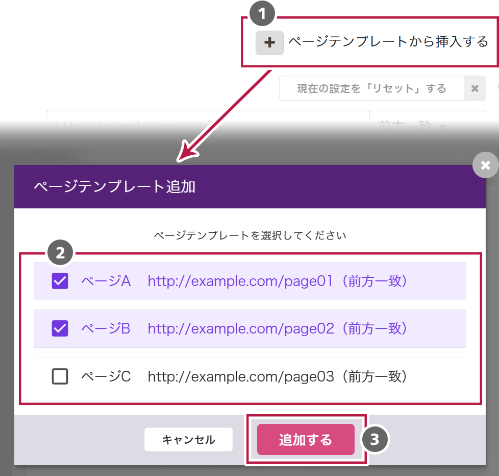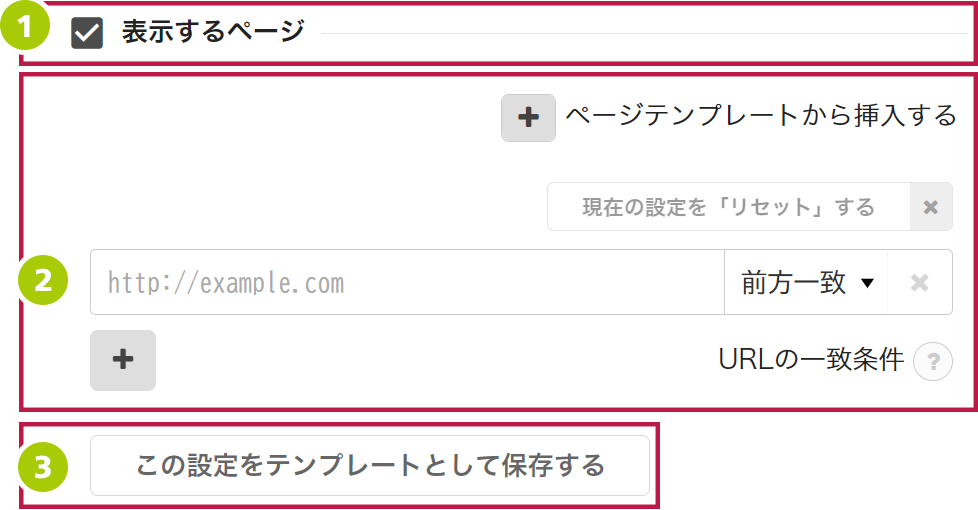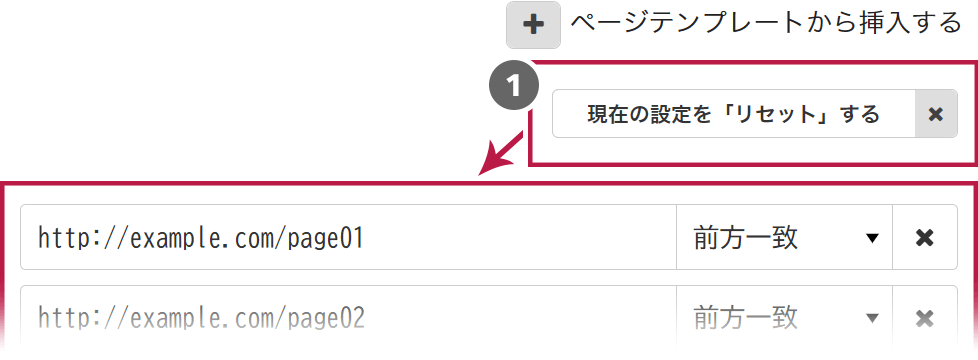 ※複数設定する場合は、「+」ボタンをクリックで追加できます。ページテンプレートを利用する